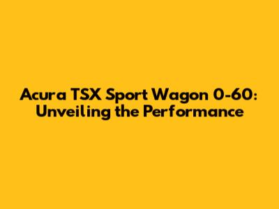 Acura TSX Sport Wagon 060: Everything You Need To Know