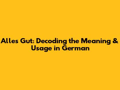 Alles Gut: Decoding The Meaning & Usage In German