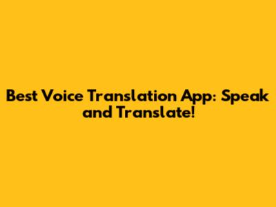 Best Voice Translation App: Speak And Translate!