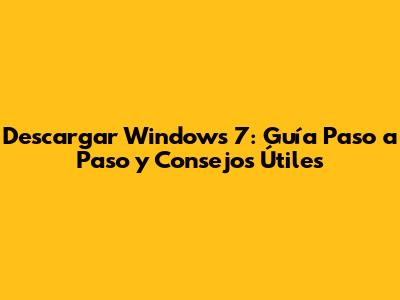 Descargar Windows 7: Guía Paso A Paso Y Consejos Útiles