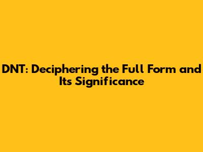 DNT: Deciphering The Full Form And Its Significance