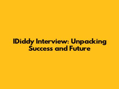 IDiddy Interview: Unpacking Success And Future