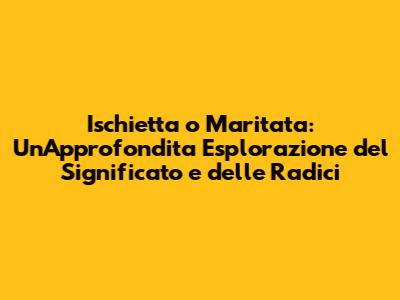 Ischietta O Maritata: Svelando Il Significato E Le Tradizioni