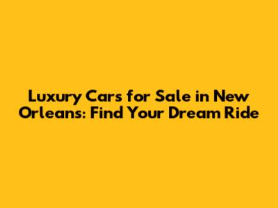 Hey guys! Are you dreaming of cruising down the streets of New Orleans in a stunning luxury car? Well, you're in the right place! Finding the perfect luxury car for sale in New Orleans can be an exciting journey. This guide will walk you through everything you need to know to make your dream a reality, from exploring different dealerships to understanding financing options.