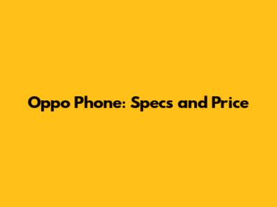 Oppo Phone: Specs And Price