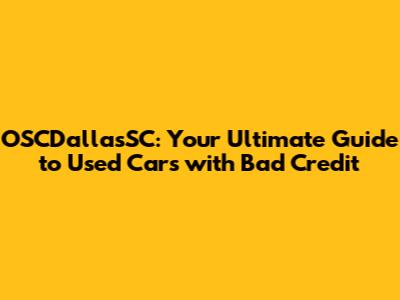 Hey there, car shoppers! Finding the right used car can be a real adventure, especially when your credit score isn't exactly stellar. But don't you worry, because we're diving deep into the world of OSCDallasSC used cars and how you can navigate the process of getting a great ride, even with bad credit. We'll cover everything from understanding your credit situation to finding financing and finally driving off in a car that suits your needs. Ready to roll?