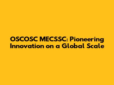 OSCOSC MECSSC: A Global Leader In Innovation