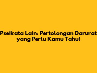 Pseikata Lain: Pertolongan Darurat Yang Perlu Kamu Tahu!