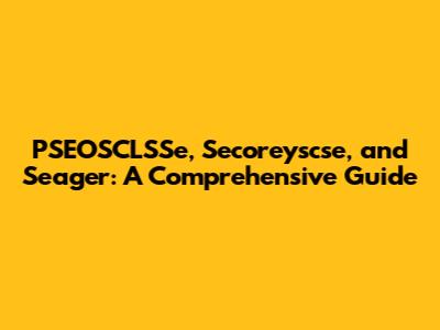 PSEOSCLSSe, Secoreyscse, And Seager: A Comprehensive Guide