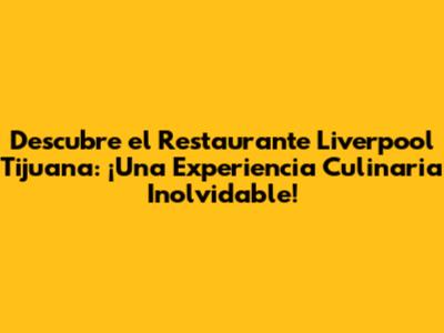 Restaurante Liverpool Tijuana: La Guía Definitiva