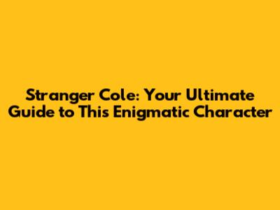 Stranger Cole: Your Ultimate Guide to This Enigmatic Character