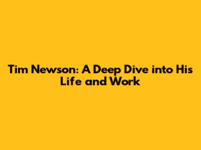 Tim Newson: A Deep Dive Into His Life And Work