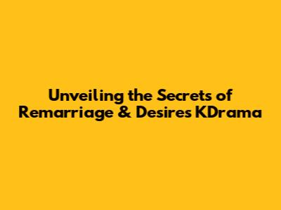 Unveiling The Secrets Of 'Remarriage & Desires' KDrama