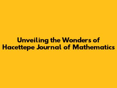 Unveiling The Wonders Of Hacettepe Journal Of Mathematics